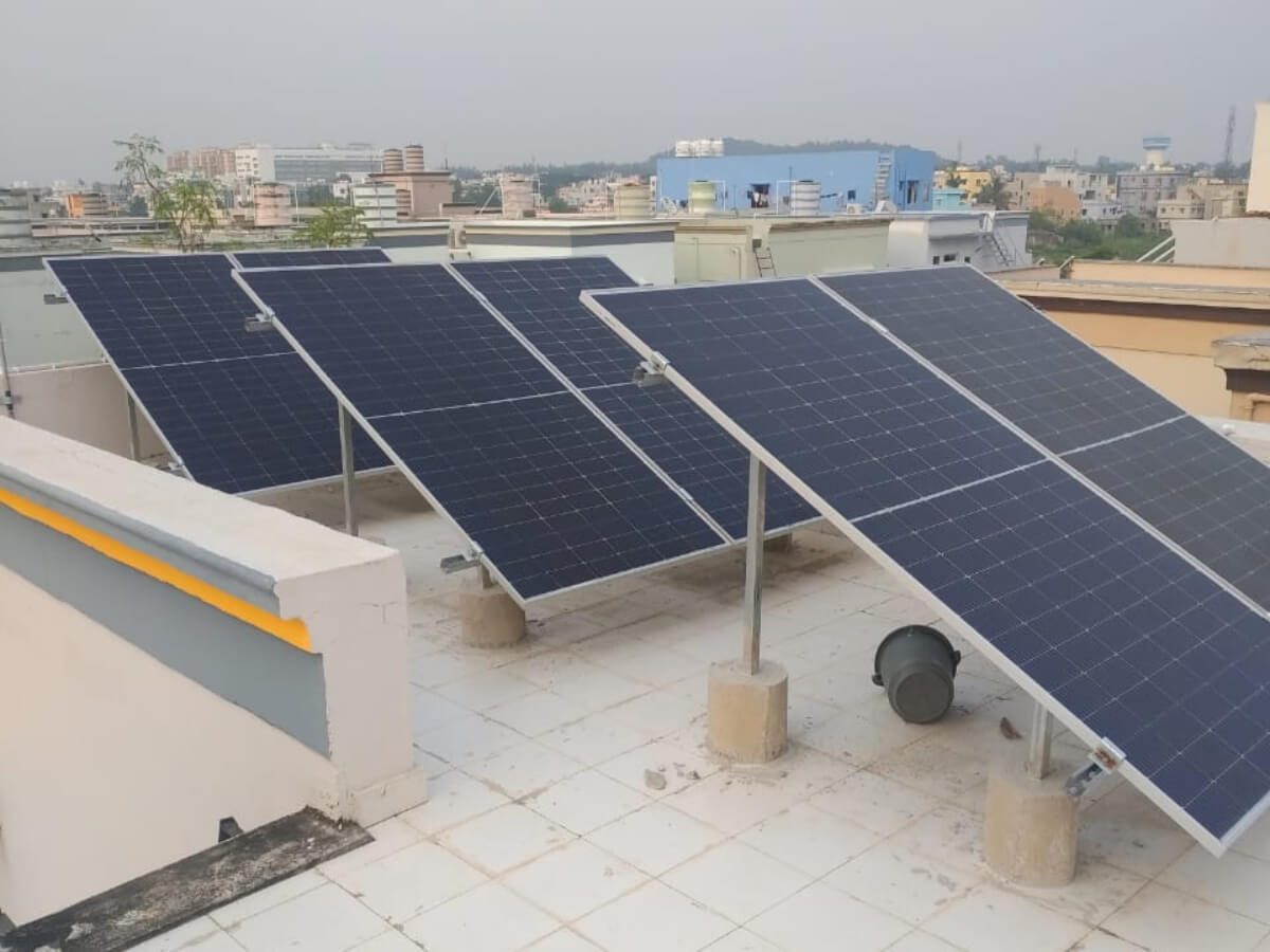 We design and deploy rooftop solar systems for individual homes, apartments, and housing societies, typically ranging from 1.06 kWp to large multi‑kWp installations.