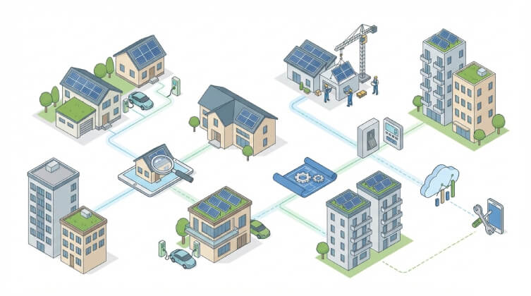We design, install, and maintain customized residential rooftop solar solutions for individual homes, villas, apartments, and housing societies. Our approach combines technical precision, aesthetic integration, and long-term performance assurance.
